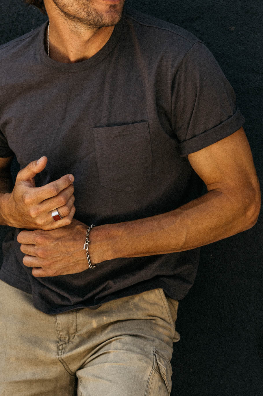 Crafted in a lightweight yet durable 160 GSM cotton slub, the Austin Pocket Tee features a soft, slubby texture that breaks in beautifully over time. The reinforced chest pocket and stitched hem add subtle utility, making this a reliable go‑to for everyday wear.