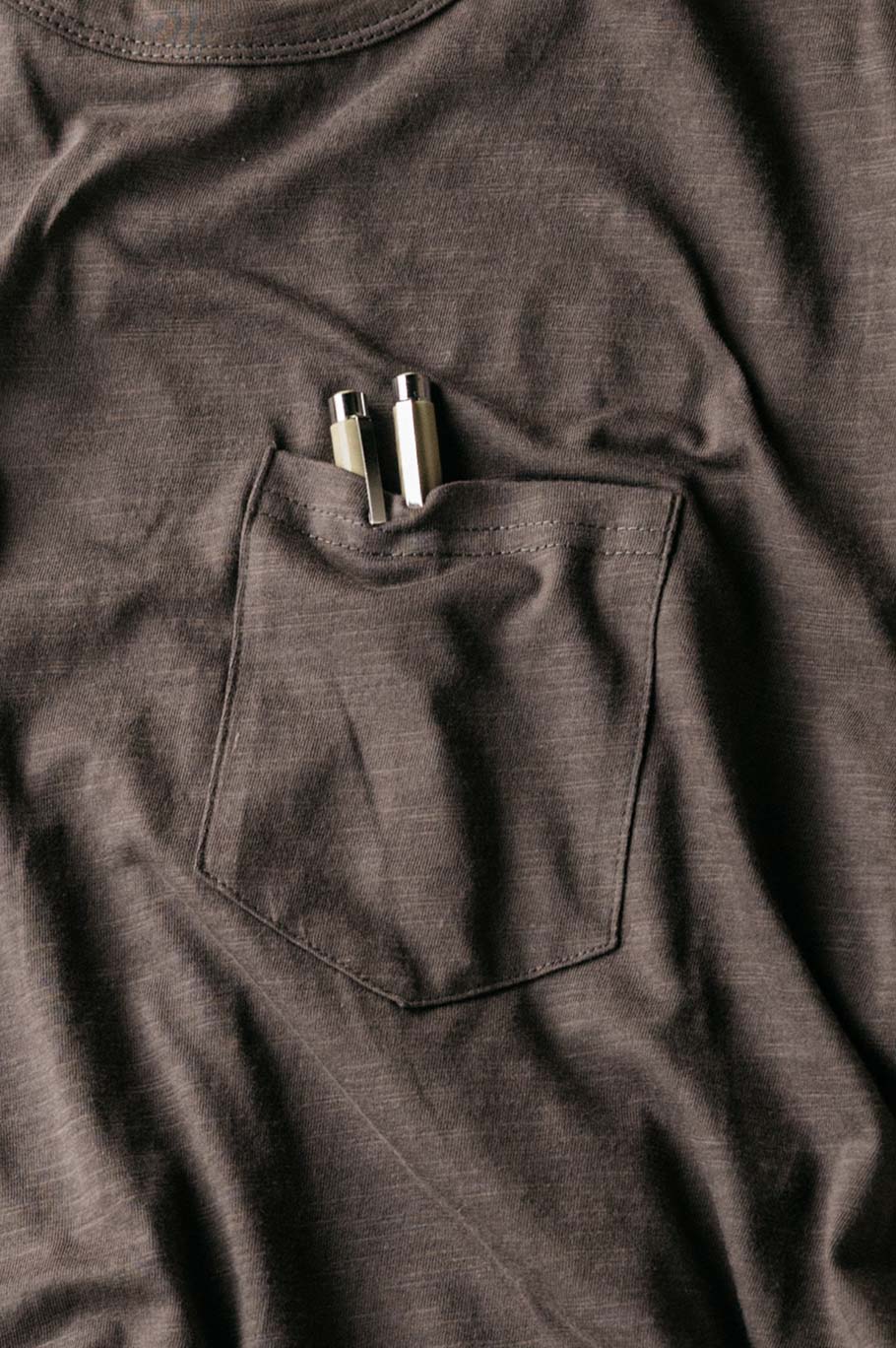 A 100% cotton slub tee with a reinforced front pocket. Fits true to size.