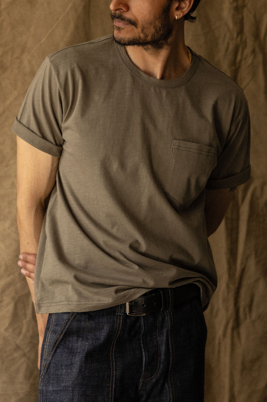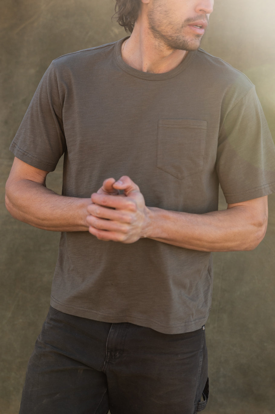 A 100% cotton slub tee with a reinforced front pocket. Fits true to size.