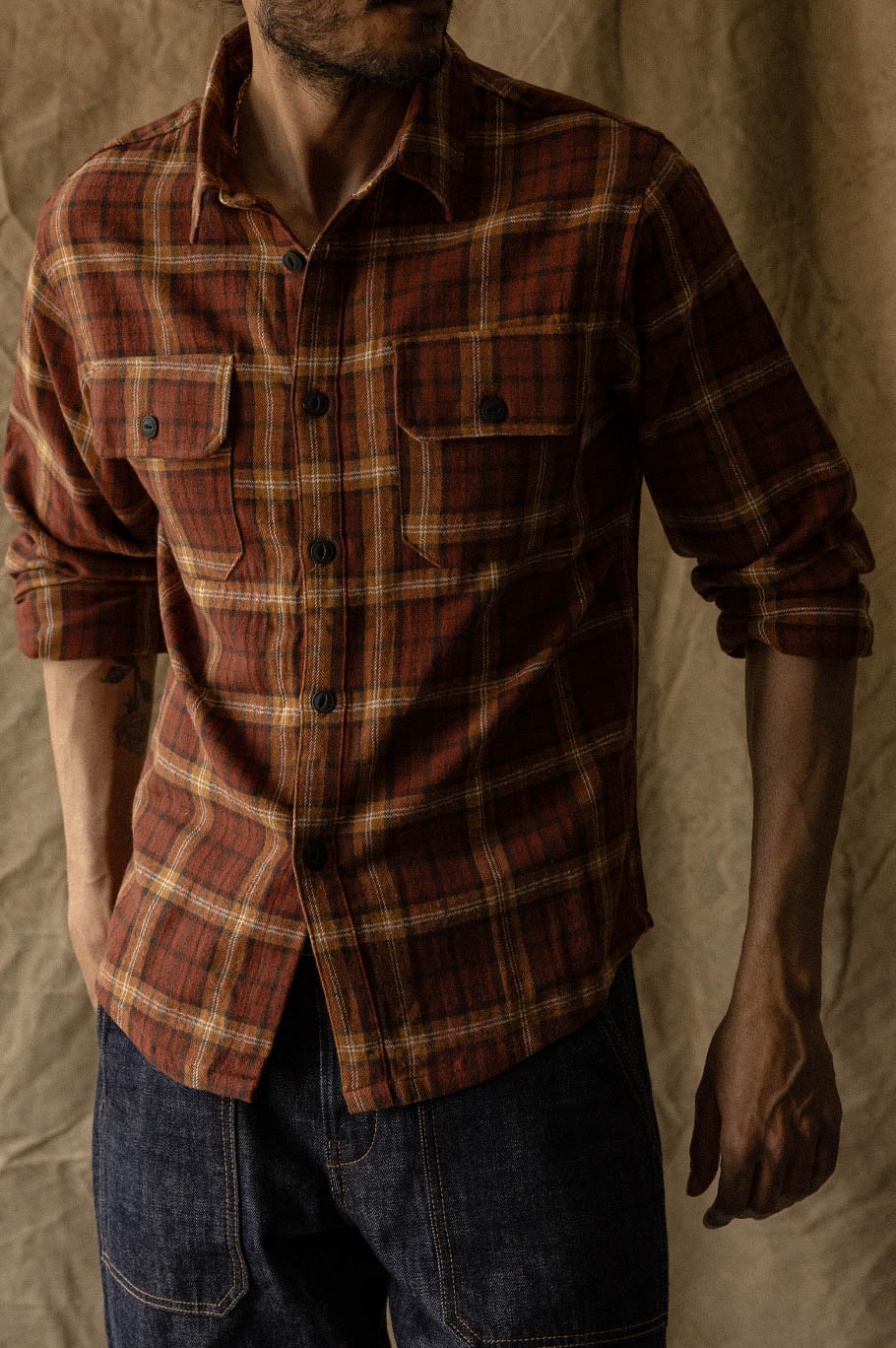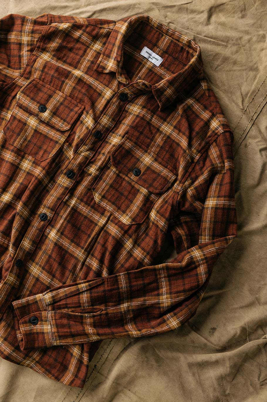 Woven from a robust 6‑oz cotton twill and brush-finished for softness, the Jude Flannel offers warmth and structure in equal measure. This fabric’s dense weave delivers cozy insulation, while the brushed finish adds a sherpa-like feel that deepens over time. With a classic cut and room to layer, it’s the kind of shirt you’ll reach for year after year.