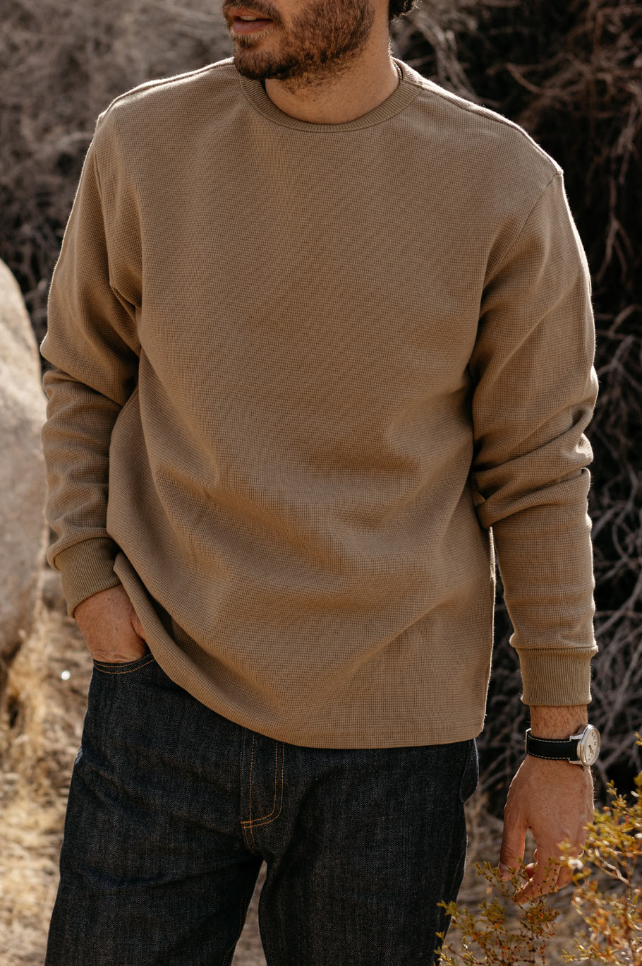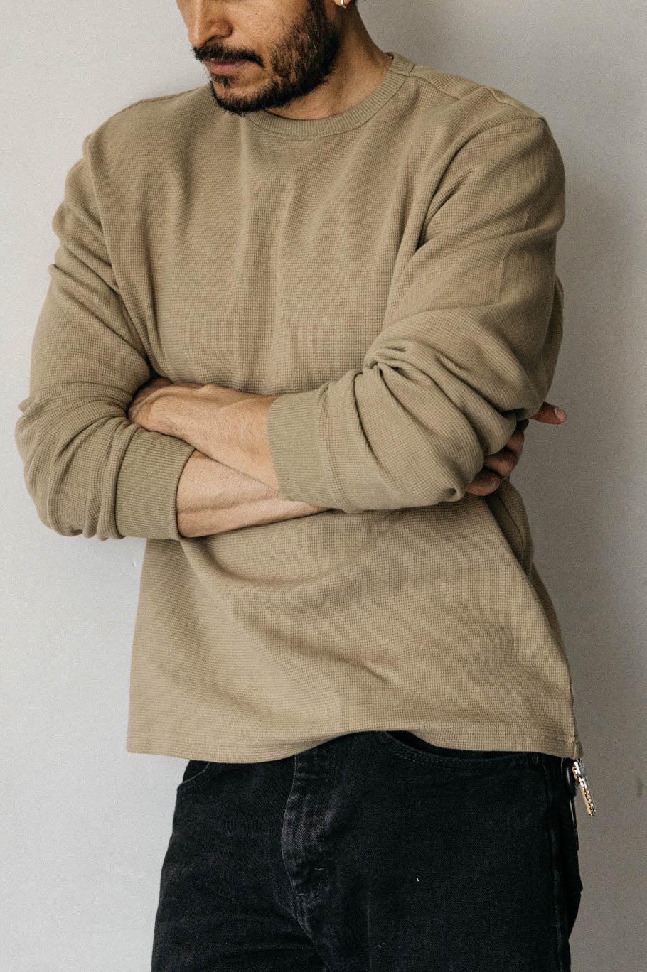 The Nelson Thermal Crew is our take on a piece we all have in our closet, designed for the man who needs warmth without sacrificing durability. Crafted from a substantial waffle knit fabric, this long sleeve crew is made to trap heat while offering breathable comfort, making it the perfect base layer for chilly mornings or a standalone staple for evenings by the fire.